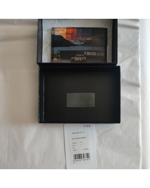 Paul Smith Mini Blur Credit Card Holder Measurements: 10cm x 6.7cm Paul Smith card wallet in textured black leather to one side and Mini print to the other. Made in Italy, it has four card slots in total. Presented in a Paul Smith gift box. New and unused, this design has been discontinued. RRP £140.