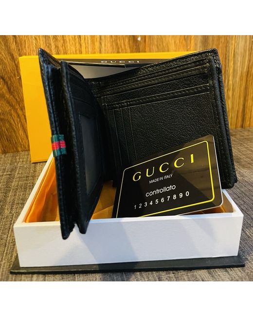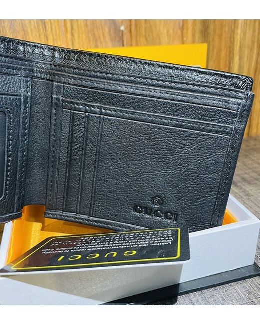 This Gucci Men's Wallet is an authentic bifold accessory crafted in Italy from luxurious black leather. It features the iconic Gucci logo as accents, adding a touch of sophistication to any outfit. Made for men, this wallet is a stylish and practical choice for keeping your essentials organized in style.