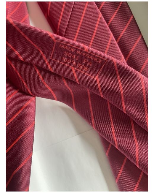 The Hermes Red Silk Striped Tie is a luxurious accessory for men, made from high-quality silk and crafted in France. This classic tie features a bold red colour with a stylish striped pattern, adding a touch of sophistication to any formal outfit. With the renowned Hermes brand name, this tie is sure to elevate your style and make a statement at any occasion.