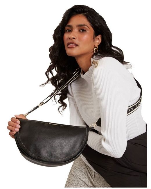 Lorreen Webbing Leather Half Moon Crossbody Bag