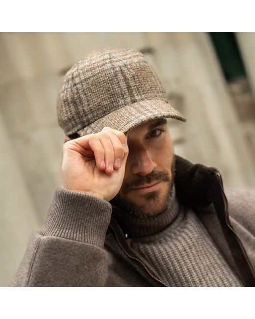 Men's Beige Checked Wool Alpaca Baseball Cap