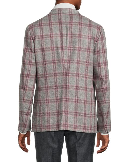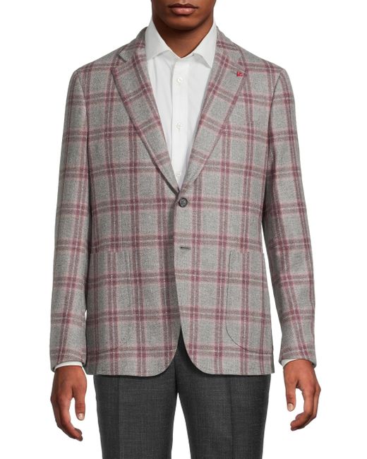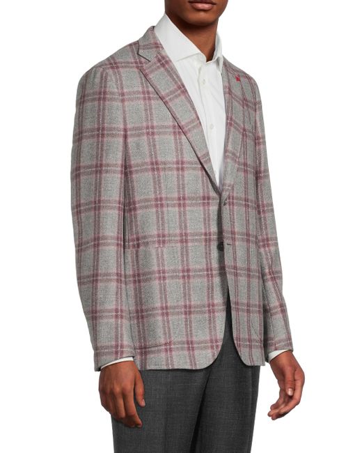 Crafted in Italy of luxurious wool and cashmere, this Isaia jacket features a classic windowpane check pattern and patch pockets. Notch lapels Long sleeves Side patch pockets Button-front closure 90% wool/10% cashmere Dry clean Made in Italy SIZE & FIT Model measurements: 6'2" tall, 40" chest, 31" waist Model is wearing a US size 40R ABOUT THE BRAND Since its founding in 1920, Isaia has been among the storied tailoring houses based in Naples, Italy. The family business began as a fabric purveyor, and more than a century later, Isaia is renowned for its signature unstructured jackets that perfectly embody the Neapolitan ethos of easy luxury. Men Luxury Coll - Isaia > Isaia > Saks Fifth Avenue. Isaia. Color: Medium Grey. Size: 44.