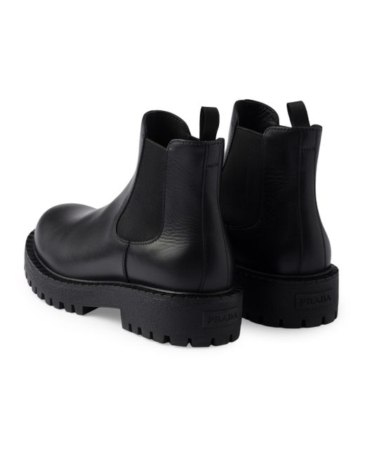 Elastic side gusset Rubber sole with leather welt Lug tread Heel height: 44 mm / 1.7'' Removable leather-covered insole Imported 100% Calf leather - 26% Elastodiene 74% Polyester. Lsd Rtw - Prada Rtw > Prada > Saks Fifth Avenue. Prada. Color: Black. Size: 7.