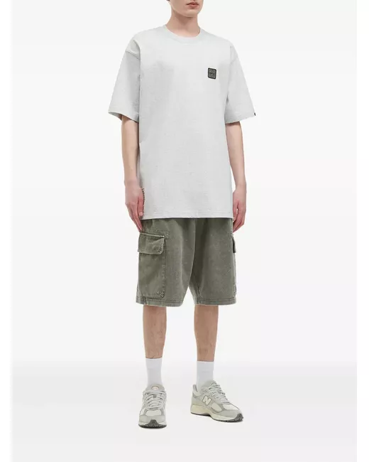 grey short sleeves crew neck embroidered patch cotton material