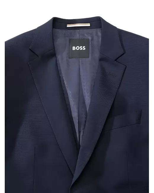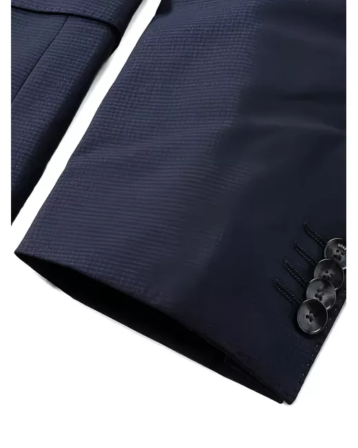 blue textured weave two-button fastening notched lapel long sleeves buttoned cuffs