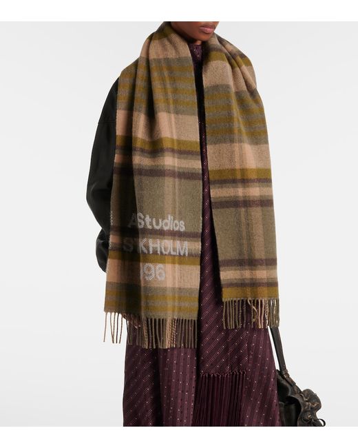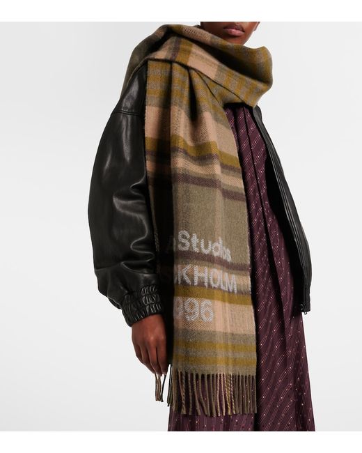 Women's Green Logo checked wool scarf