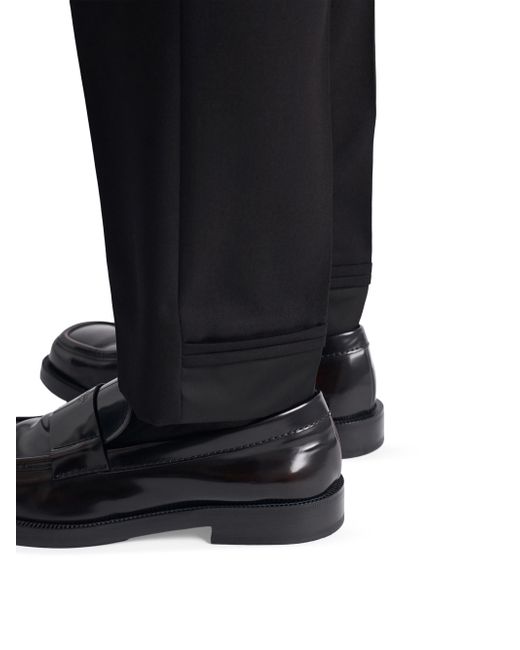 Slim fit Constructed waistband Concealed button fly with hook Angled front slash pockets with third small zipper pocket Double welt pockets with button on the back Hem width: 18 cm Enameled metal triangle logo Imported 100% Fleece Wool. Lsd Rtw - Prada Rtw > Prada > Saks Fifth Avenue. Prada. Color: Black. Size: 32.