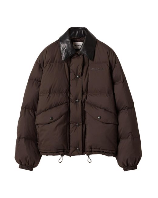 Technical Pongé Cropped Down Jacket. Oversized Goose down padding Leather collar Long sleeves Elasticized cuffs Zipper and snap closure Patch pockets Elasticized drawstring hem Transfer print logo Made in Italy 100% Recycled Polyester SIZE & FIT 0.0W x 72.0H x 0.0L. Lsd Handbags - Miu Miu > Miu Miu > Saks Fifth Avenue. Miu Miu. Color: Brown. Size: 4.