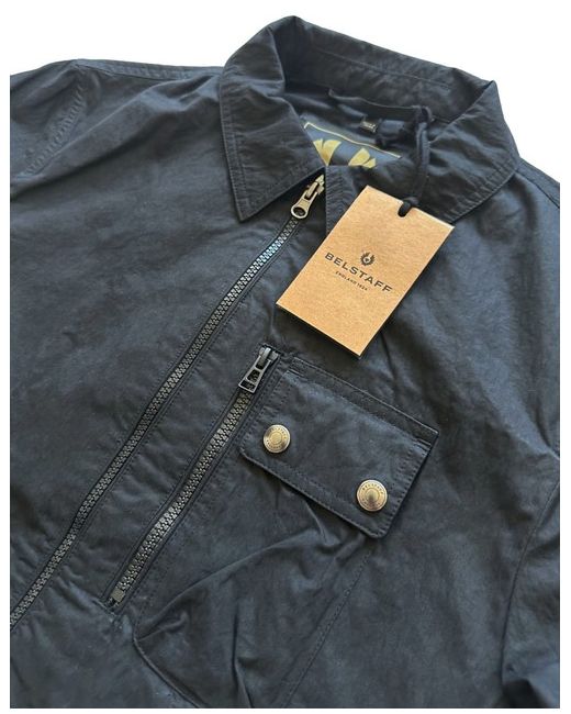 100% GENUINE BELSTAFF GEAR FROM LONDON (NOT FAKE). Belstaff Rail Overshirt - BLACK, Cotton blend gabardine, Lightweight point collar overshirt, Crinkly texture, Matte rubber poppers and hardware, Two-way front zip closure, Zipped and buttoned flap pockets at chest.