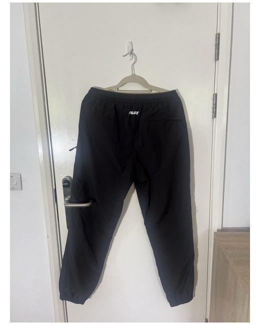 The Palace Sheller Joggers are a stylish and comfortable pair of men's trousers in black, perfect for activewear occasions like skateboarding. With a drawstring closure and a jogger style, these trousers are designed for a medium size with a regular fit. The Palace brand ensures quality and style, making these trousers a great addition to any man's wardrobe for the spring season.