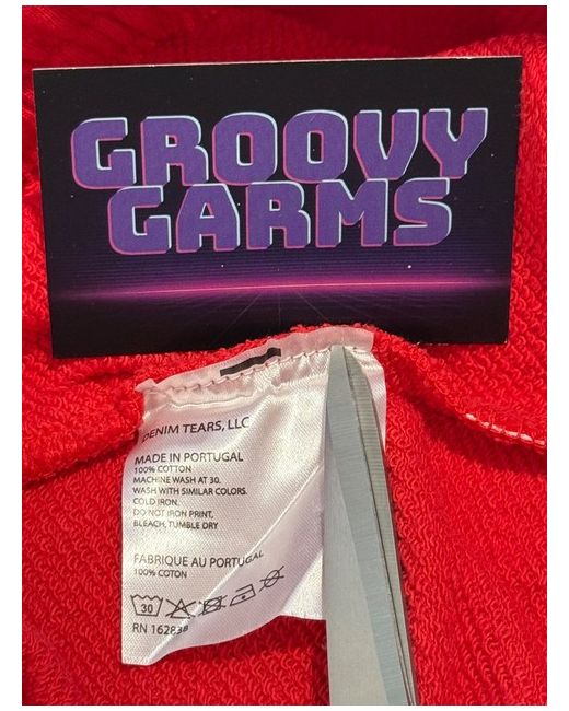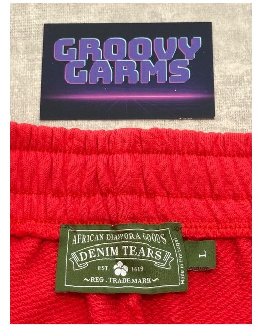 Denim Tears Red Cotton Wreath Shorts in Different Sizes to Choose From.