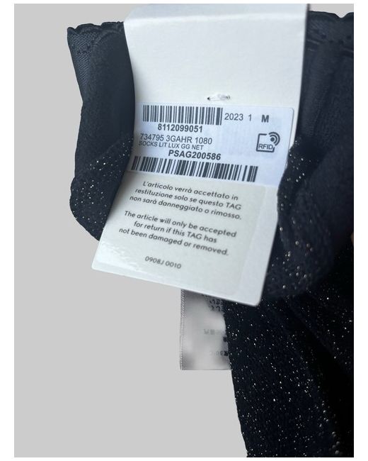 Gucci interlocking GG mesh ankle socks in black and metallic fibres. Gucci band logo and interlocking GG logo. In black colour stretch-design ankle length metallic threading logo trim Fabric Polyamide 76%, Spandex/Elastane 13%, Metallic Fibre 11% Comes with dust bag, and paperbag RRP £195 Please check my other listings, you’ll be spoiled with choiches.