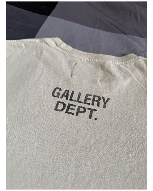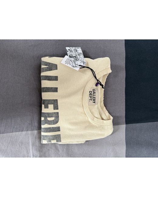 The Gallery Dept. Galleries are Boring without us T-Shirt is a stylish and comfortable medium-sized t-shirt for men. Featuring a beige colour with short sleeves, this regular fit t-shirt is perfect for casual wear. Made by the popular brand Gallery Dept., this t-shirt is a great addition to any wardrobe, especially for those who appreciate art and creativity. The t-shirt is brand new and comes in a classic white and beige colour scheme, making it a versatile piece for any outfit.