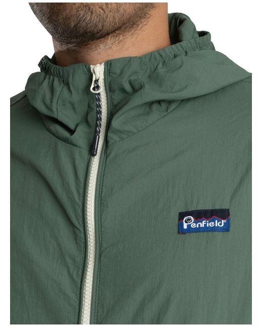 The Penfield Logo Rain Jacket in cilantro green is a lightweight, weather-ready layer built for wet conditions. The logo on chest stands out against the fresh colourway, while elasticated cuffs and hem ensure a close fit to block wind and rain.