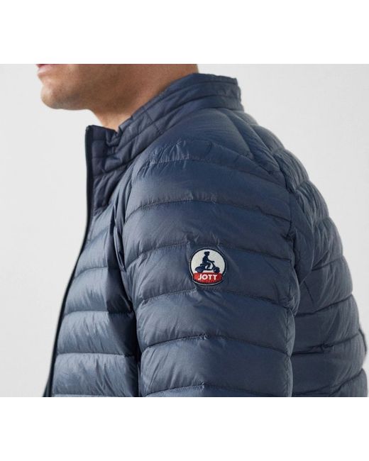 JOTT Bluestone Lightweight Down Jacket Mat. Bluestone - Large. This long sleeves jacket has 2 invisible zipped pockets and a front zip closure. Filling : 90% down, 10% feather.