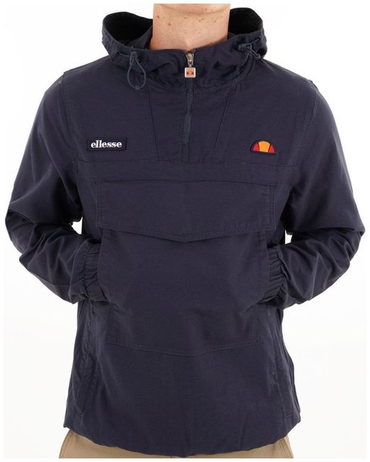 Embroidered Ellesse logo patches. Cotton canvas fabric. Fixed Hood with drawstring toggles. Made from 100% cotton. 1/4 zip closure. Model is a 41" chest & is wearing a size Large.