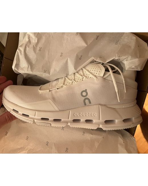 These are the ON Cloudnova 2 trainers in all-white, men’s size UK 10.5. They’re brand new with tags, never worn, in perfect condition. ON are known for blending running tech with everyday comfort, and the Cloudnova 2 is no different. You get proper cushioning underfoot, a secure fit thanks to the Speedboard® and heel support, and a breathable mesh upper that keeps things light. They’re designed for all-day wear, whether you’re walking around town, travelling, or just want a smart pair of trainers that are comfortable enough for long days on your feet. The all-white colourway makes them really versatile - clean, modern and goes with pretty much anything.