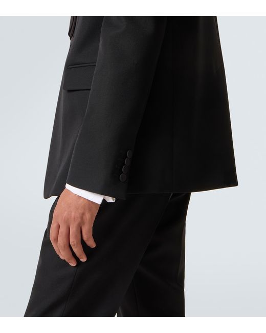 Material: 100% virgin wool. Care instructions: dry clean. Made in Italy. Designer color name: Black. Item color: black. Wool. Lining: 100% cupro. Sleeve lining: 100% viscose. Pocket lining: 100% cotton. Details: 100% silk. Contrast lapel. Pockets: breast pocket, flap pockets, internal pockets. Cuff: four buttons. Closure: single-breasted (one button). Vent: single.