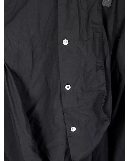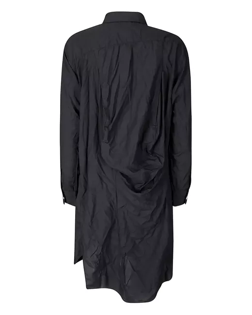 black front button fastening crease effect asymmetric neck long sleeves