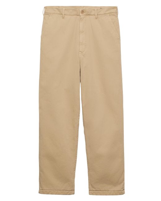 Wide-leg fit Zipper fly with button Angled front slash pockets Welt back pockets with button Hem width: 23 cm Fabric triangle logo on the back Artisan treatment on the finished garment creates a deliberate vintage look Creases and folds are an intrinsic feature made by pressing the finished garment. Imported 100% Cotton. Lsd Rtw - Prada Rtw > Prada > Saks Fifth Avenue. Prada. Color: Beige. Size: 34.