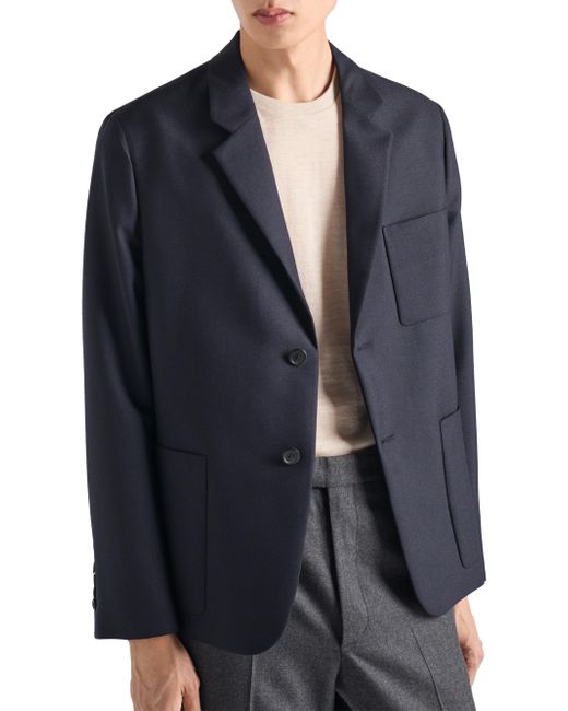 Slim-fit silhouette Sartorial tailoring Notch lapel Center vent Two-button closure Four-button cuffs Patch pockets Unlined garment Fabric triangle logo with sartorial label on the back Imported 68% Fleece Wool, 32% Mohair. Lsd Rtw - Prada Rtw > Prada > Saks Fifth Avenue. Prada. Color: Blue. Size: 38.