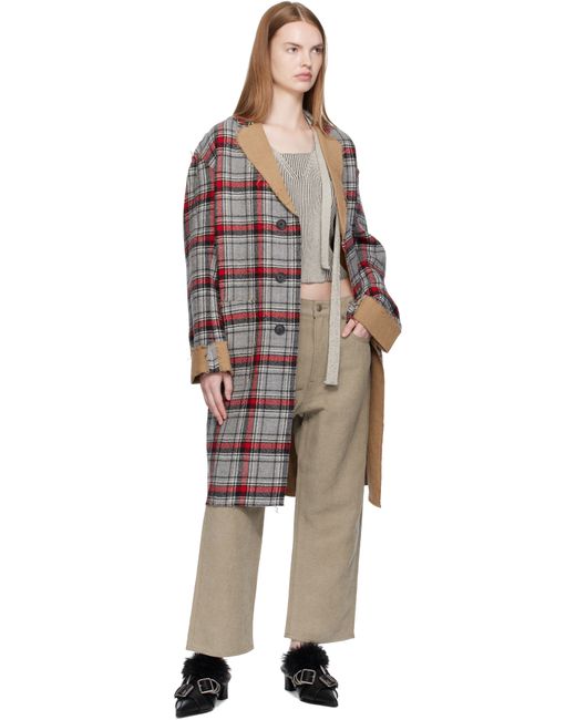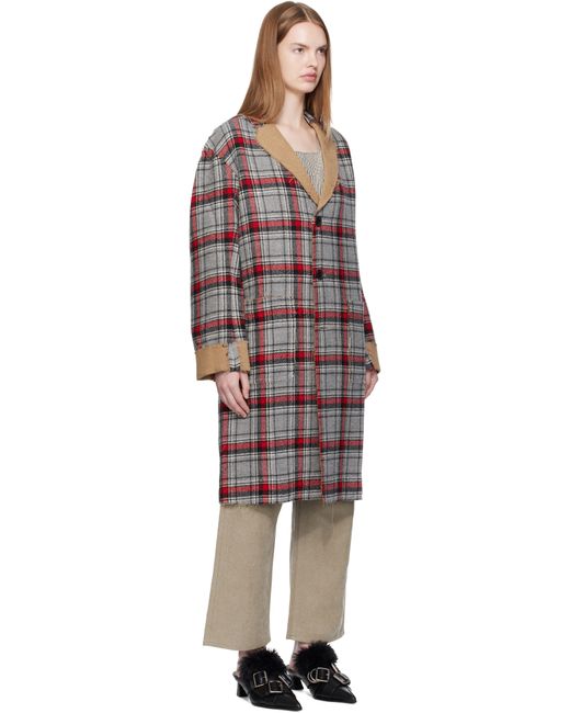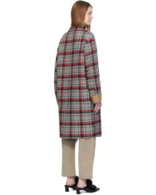 Reversible cotton- and wool-blend flannel coat. Reverse in beige broken twill. · Plaid pattern and raw edges throughout · Notched lapel · Button closure · Patch pockets at front and interior · Leather logo patch at inner pocket · Dropped shoulders · Rolled cuffs · Central vent at back hem Supplier color: Red/Grey plaid