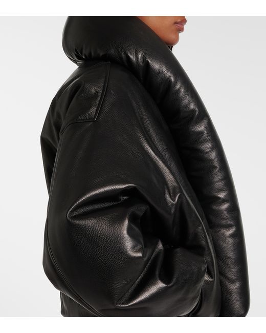 Material: 100% lamb leather. Care instructions: specialist clean. Made in Italy. Designer color name: Noir Alaia. Item color: black. Hardware color: silver. Lining: 100% cupro. Pocket lining: 100% cotton. Filling: 100% polyester. Closure: zipped front. Pockets: side slit pockets. Elasticated waistband. Cuff: elasticated. Fully lined. Leather.