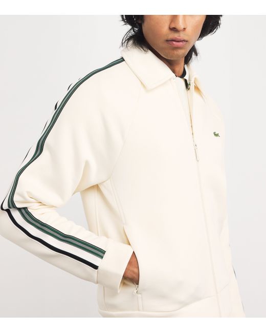 The seamless blend of functionality and sophistication radiates throughout Lacoste's athleisure, and this elegant track jacket is no exception. Spun from a creamy cotton blend, its clean-cut silhouette provides structure and form, complemented by a striped trim.