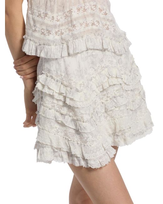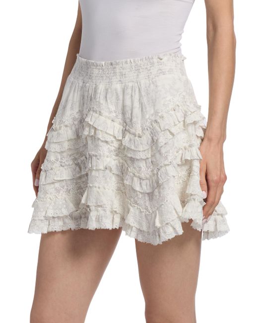 Crafted of lightweight cotton, LoveShackFancy's Serevina miniskirt features a ruffled trim, smocked waist, and a muted floral print. Smocked waist Pulls on 100% cotton Dry clean Imported SIZE & FIT Model measurements: 5'10" tall Model is wearing a US size Small. Contemporary Sportswear - Trend > Loveshackfancy > Saks Fifth Avenue. LoveShackFancy. Color: Chantilly. Size: Medium.