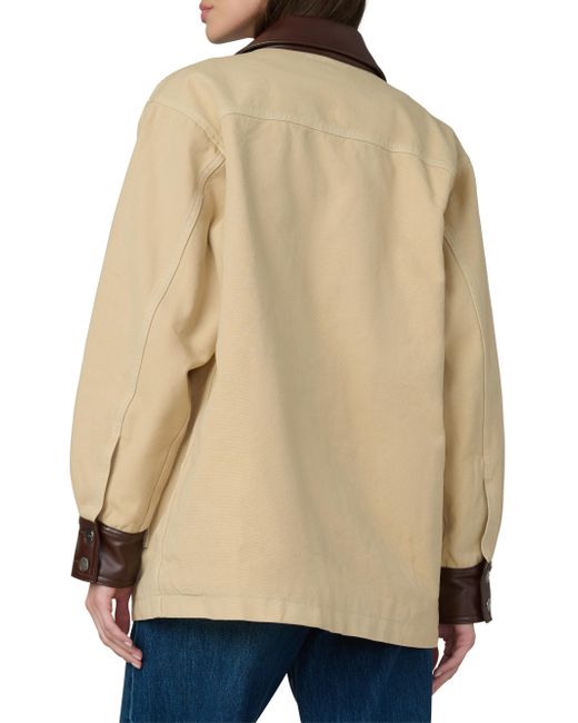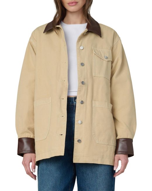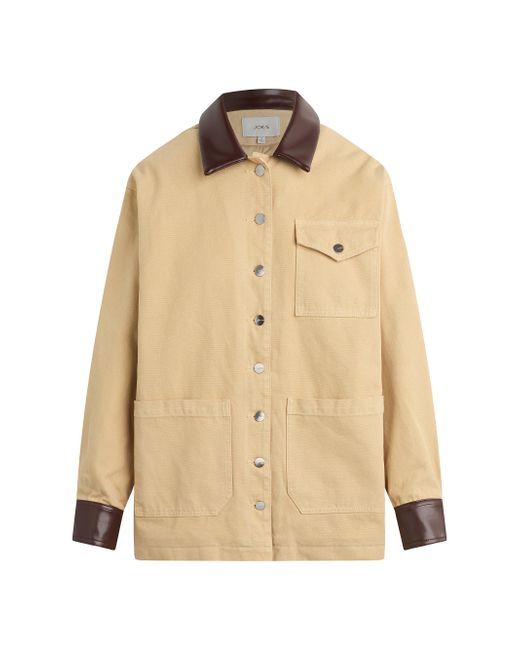 Crafted of cotton canvas, this chore jacket from Joe's Jeans is detailed with a faux leather spread collar and cuffs. Spread collar Long sleeves, button cuffs Chest button-down flap-patch pocket Side patch pockets Button-front closure 100% cotton Machine wash Imported SIZE & FIT About 30.25" from shoulder to hem Model measurements: 5'10" tall Model is wearing a US size Small. Contemporary Sportswear - Denim And Bottoms > Joe's Jeans > Saks Fifth Avenue. Joe's Jeans. Color: Biscotti. Size: Large.