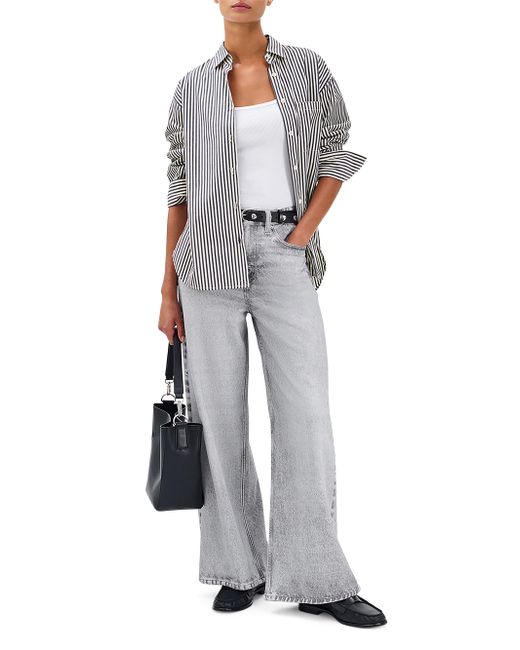 Miramar is rag & bone's hyperrealistic print designed to capture every intricate detail of classic jeans, from distressing and fading to tiny stitches and rivets. This revolutionary printing technique creates an optical illusion while retaining the original fabric's soft feel and function. The Terry Sofie ankle pants feature a wide-leg silhouette cut at the ankle. Elasticized waistband Front scoop pockets 100% cotton Machine wash Imported SIZE & FIT Rise: about 12.5" Inseam: about 30" Leg opening: about 25.25" Model measurements: 5'10" tall Model is wearing a US size 4 ABOUT THE BRAND In 2002, rag & bone founder Marcus Wainwright combined his British heritage with a downtown-New York aesthetic to set the tone for the label. At the heart of the edgy-yet-laid-back brand is its focus on quality craftsmanship and attention to detail. The epitome of cool, off-duty style, it's no wonder the signature second-skin denim is favored by many. Contemporary Sportswear - Denim And Bottoms > Rag & Bone > Saks Fifth Avenue. rag & bone. Color: Icy Grey. Size: 25.