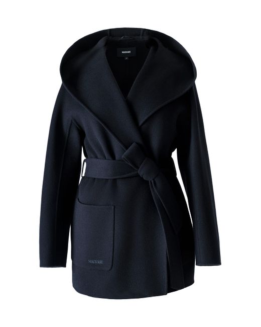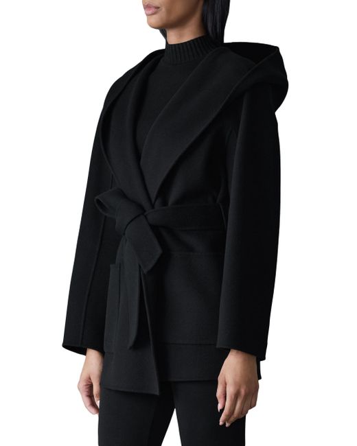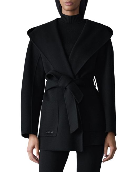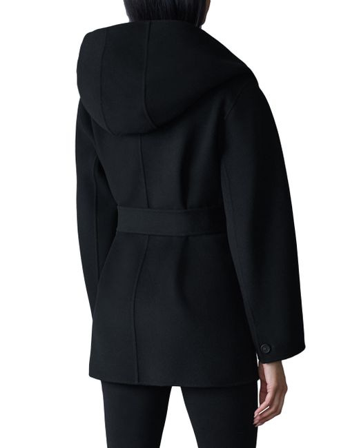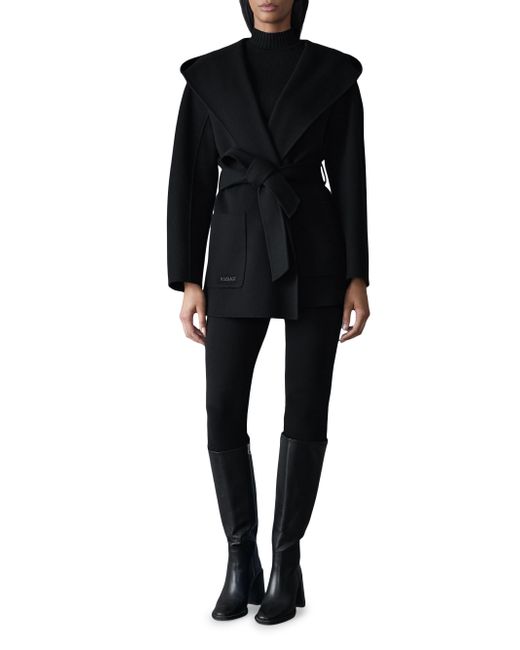 Crafted of unlined double-face wool for transitional weather, the Paya wrap coat from Mackage features a bathrobe-inspired silhouette with a wide lapel, drop shoulders, and a tonal sash belt. It includes patch pockets and a removable hooded collar. Removable collar Shawl lapels Drop shoulders Long sleeves Side patch pockets Self-sash Pulls on 100% wool Dry clean Imported SIZE & FIT About 30.5" from shoulder to hem Model measurements: 5'10" tall Model is wearing a US size Small ABOUT THE BRAND Founded in Montreal in 1999, Mackage began as a comprehensive outerwear brand offering everything from fine leather jackets to tailored wool coats and down parkas. The label evolved to develop superior construction and comfort, creating flattering and elegant silhouettes. Mackage is committed to quality and performance with an eye toward aesthetic innovation in its women's, men's and kids' designs. Outerwear And Swimwear - Down > Mackage > Saks Fifth Avenue. Mackage. Color: Black. Size: Small.