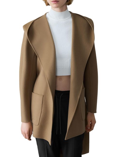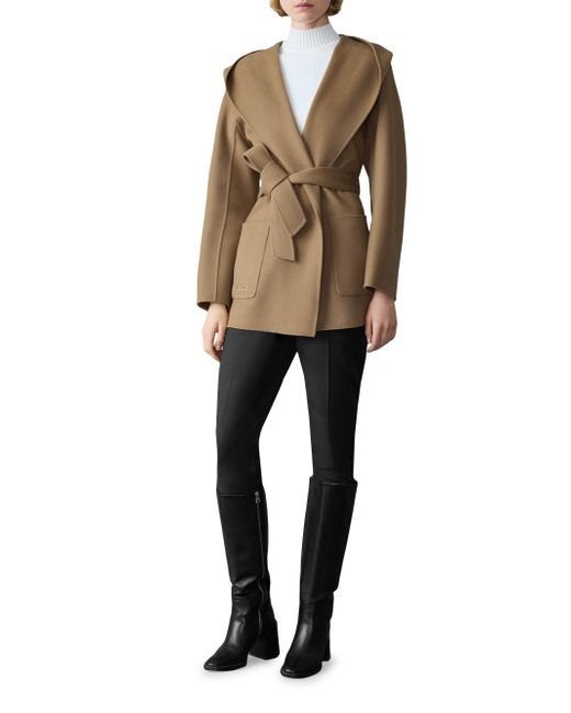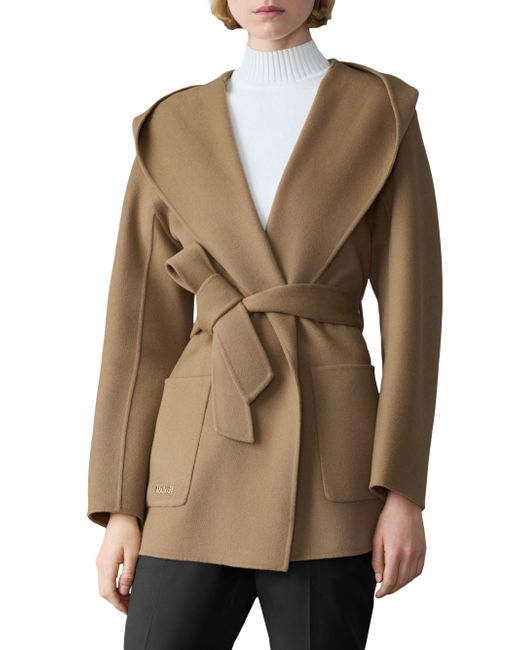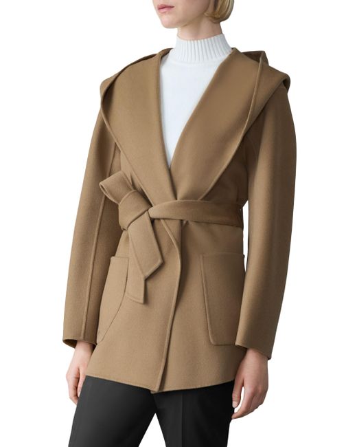 Crafted of unlined double-face wool for transitional weather, the Paya wrap coat from Mackage features a bathrobe-inspired silhouette with a wide lapel, drop shoulders, and a tonal sash belt. It includes patch pockets and a removable hooded collar. Removable collar Shawl lapels Drop shoulders Long sleeves Side patch pockets Self-sash Pulls on 100% wool Dry clean Imported SIZE & FIT About 30.5" from shoulder to hem Model measurements: 5'10" tall Model is wearing a US size Small ABOUT THE BRAND Founded in Montreal in 1999, Mackage began as a comprehensive outerwear brand offering everything from fine leather jackets to tailored wool coats and down parkas. The label evolved to develop superior construction and comfort, creating flattering and elegant silhouettes. Mackage is committed to quality and performance with an eye toward aesthetic innovation in its women's, men's and kids' designs. Outerwear And Swimwear - Down > Mackage > Saks Fifth Avenue. Mackage. Color: Otter. Size: XS.