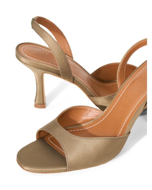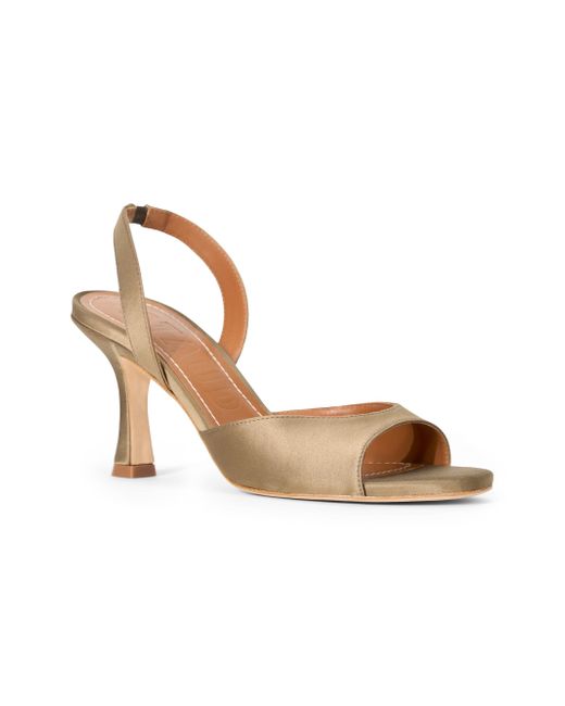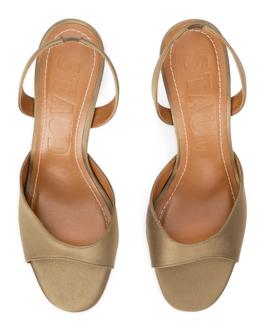 Brigitte sandals from Staud are crafted of satin and feature a slingback design with a tapered stiletto heel. Open toe Elasticized strap Polyester upper Leather/ABS sole Importe. Women's Shoes - Workshop Shoes > Staud > Saks Fifth Avenue. Staud. Color: Truffle. Size: 5.