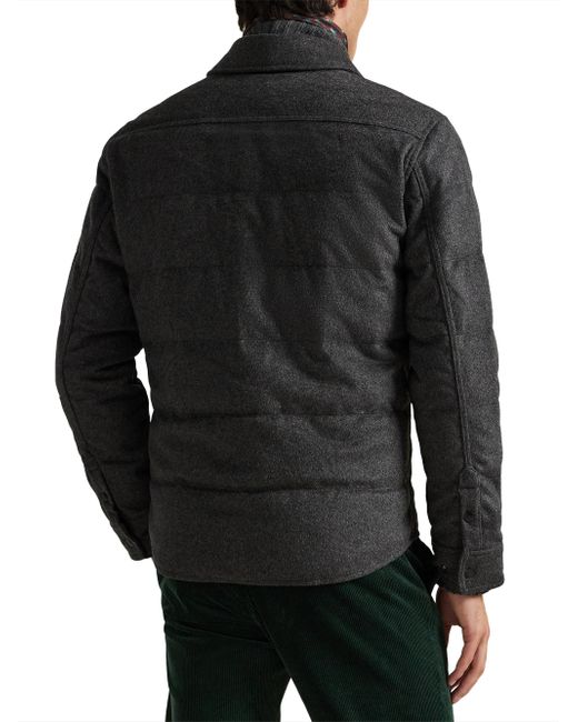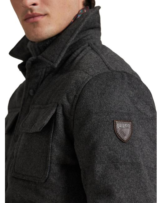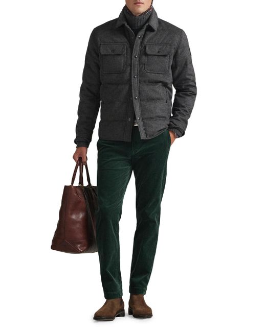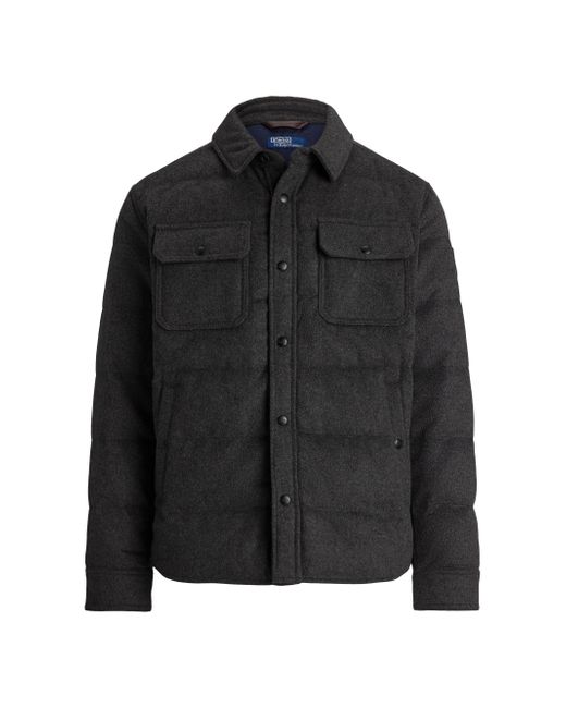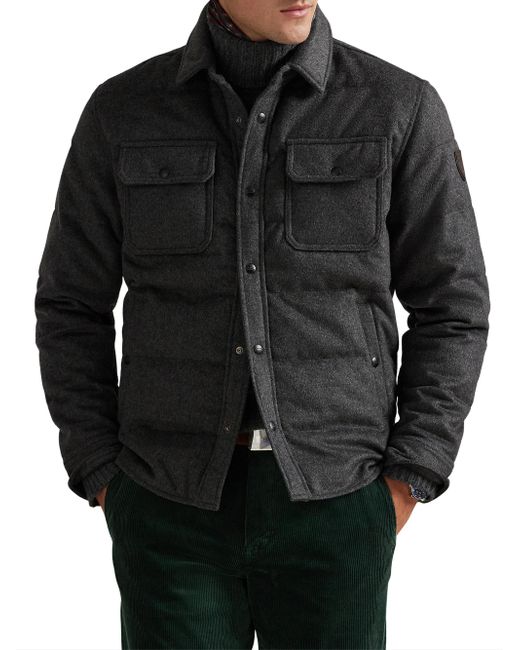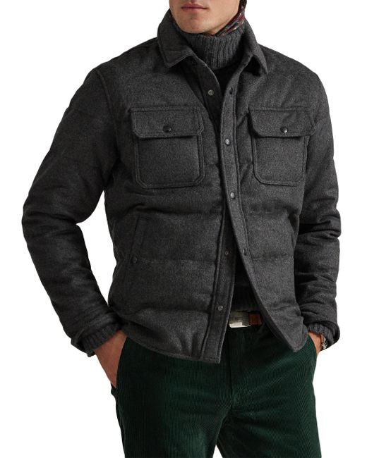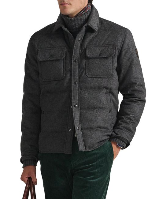 This Polo Ralph Lauren quilted down jacket is crafted of a soft wool blend and styled with a spread collar and flap pockets. Spread collar Long sleeves Front flap pockets Side slip pockets Front snap closure 56% wool/38% polyester/6% other fibers Trim: 100% leather Lining: 100% polyester Fill: 90% down/10% feather Machine wash Imported SIZE & FIT Model measurements: 6'2" tall, 40" chest, 31" waist Model is wearing a US size Medium. Men Luxury Coll - Polo Blue Label > Polo Ralph Lauren > Saks Fifth Avenue. Polo Ralph Lauren. Color: Fortress Grey Heather. Size: Large.