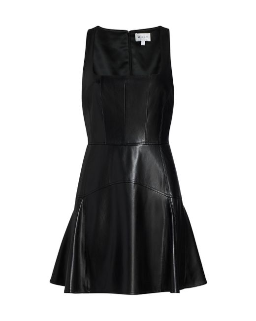 Cut for an A-line silhouette, this Milly minidress is crafted of faux leather. A square neckline details this style. Squareneck Sleeveless Back zip closure 100% polyester Coating: 100% polyurethane Lining: 96% polyester/ 4% spandex Spot clean Imported SIZE & FIT About 34.5" from shoulder to hem Model measurements: 5'10" tall Model is wearing a US size 4. Modern Collections - Milly > Milly > Saks Fifth Avenue. Milly. Color: Black. Size: 0.