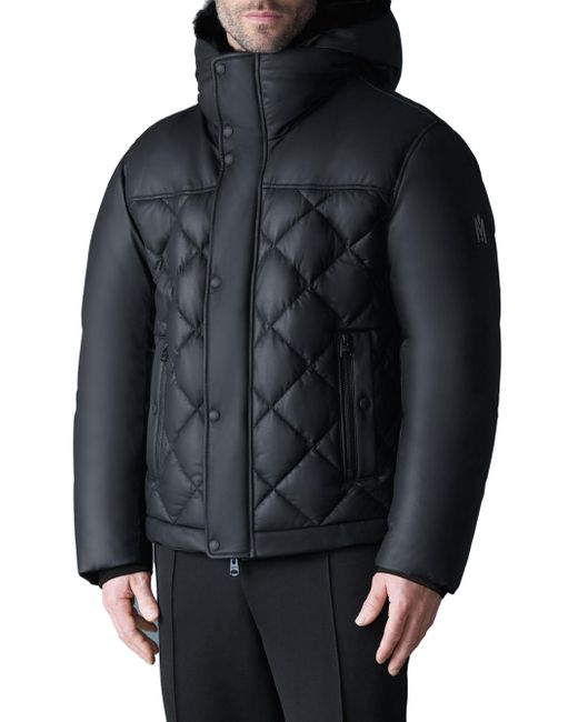 This Cash jacket from Mackage is crafted of down-filled quilted fabric and features a removable bib with a shearling-trimmed hood, storm cuffs, adjustable bungee hem, double entry pockets, and a shearling-lined hood. Hood Long sleeves Side zip pockets Snap button with front zip closure 100% leather Lining: 100% nylon Combo 1: 100% leather Fill: 90% duck down/10% duck feathers Fur type: dyed sheep shearling Fur origin: China Dry clean by leather specialist Imported SIZE & FIT True to size Regular fit About 26.75" from shoulder to hem Model measurements: 6'2" tall, 40" chest Model is wearing a US size 40 ABOUT THE BRAND Founded in Montreal in 1999, Mackage began as a comprehensive outerwear brand offering everything from fine leather jackets to tailored wool coats and down parkas. The label evolved to develop superior construction and comfort, creating flattering and elegant silhouettes. Mackage is committed to quality and performance with an eye toward aesthetic innovation in its women's, men's and kids' designs. Mens Modern Coll & Outer - Contemporary Outerwear > Mackage > Saks Fifth Avenue. Mackage. Color: Black. Size: 40.