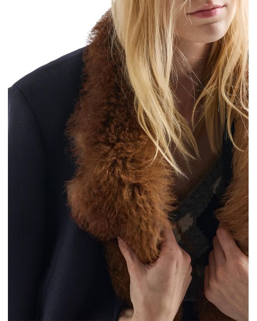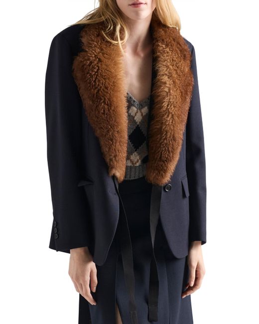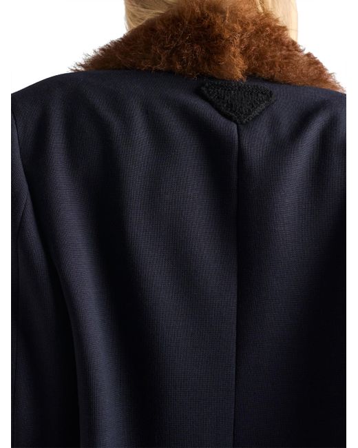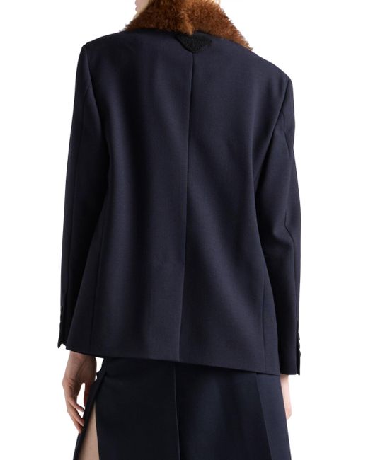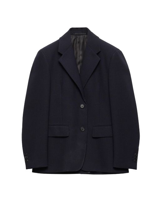Straight fit Lined Notch lapel Front button closure Straight three-button sleeves Flapped welt pockets Back vent Shetland wool triangle logo Imported 100% Fleece wool. Lsd Rtw - Prada Rtw > Prada > Saks Fifth Avenue. Prada. Color: Blue. Size: 4.