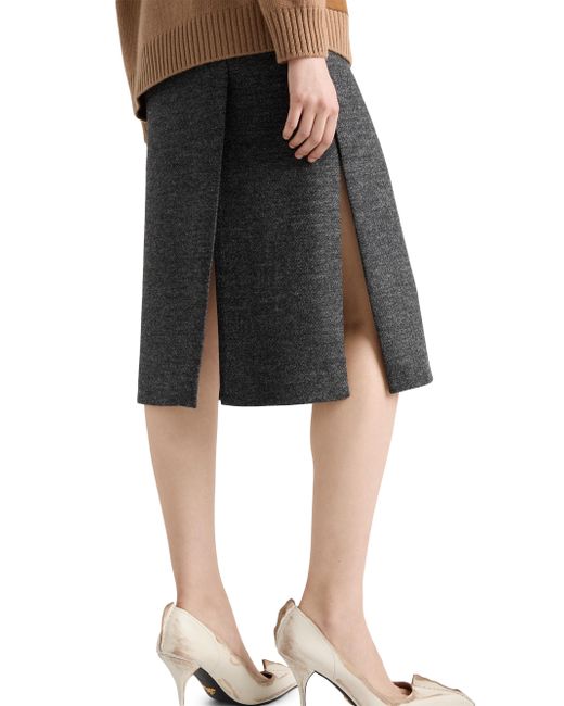 Rush Stitch Skirt. Straight fit Lined garment Front and back slit Back side closure with hook and zip Made in Italy 100% Fleece Wool. Lsd Rtw - Prada Rtw > Prada > Saks Fifth Avenue. Prada. Color: Grey. Size: 6.