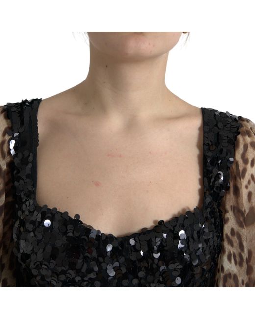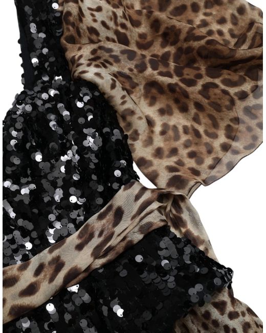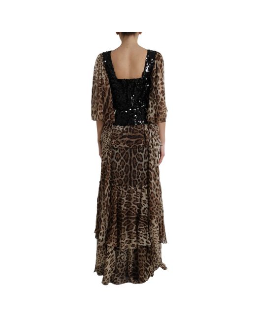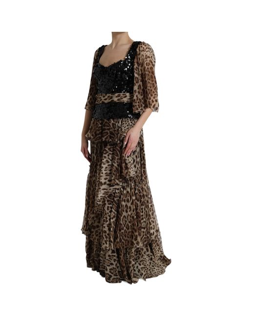 DOLCE & GABBANA Gorgeous brand new with tags, 100% Authentic Dolce & Gabbana leopard print maxi gown. This stunning dress is crafted from luxurious silk with a flowing ruffle tier design and features a sequined bodice with wide sleeves for added elegance. A true statement evening gown that blends wild sophistication with Italian craftsmanship. Model: Maxi Dress Color: Brown Leopard Print / Black Zipper closure on the back Logo details Made in Italy Material: 70% Silk 30% Nylon Inner: 70% Silk 16% Cotton 8% Nylon 8% Elastane