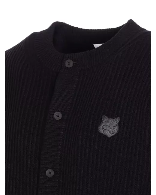 Fox Head Wool Ribbed Cardigan