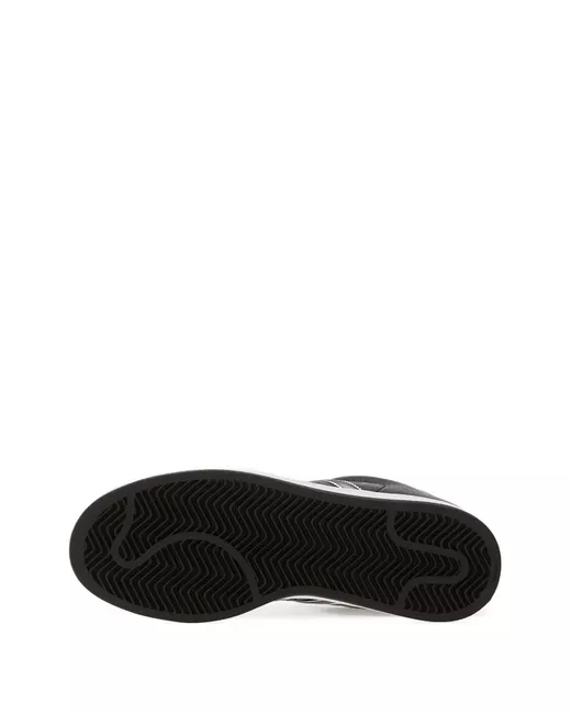 black leather rubber shell toe three-stripe detail flat laces rubber sole