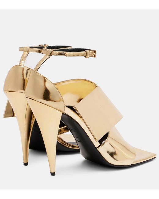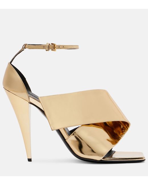 Upper: calf leather. Lining: leather. Sole: leather insole and sole. Toe shape: square open toe. Made in Italy. Includes: shoe box, dust bag. Designer color name: Golden. Item color: gold. Closure: buckle-fastening ankle strap. Hardware color: gold.