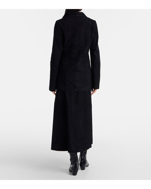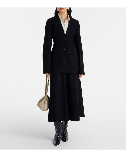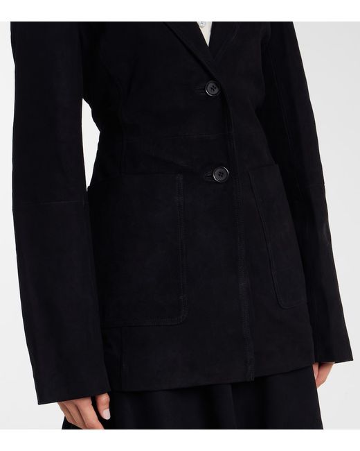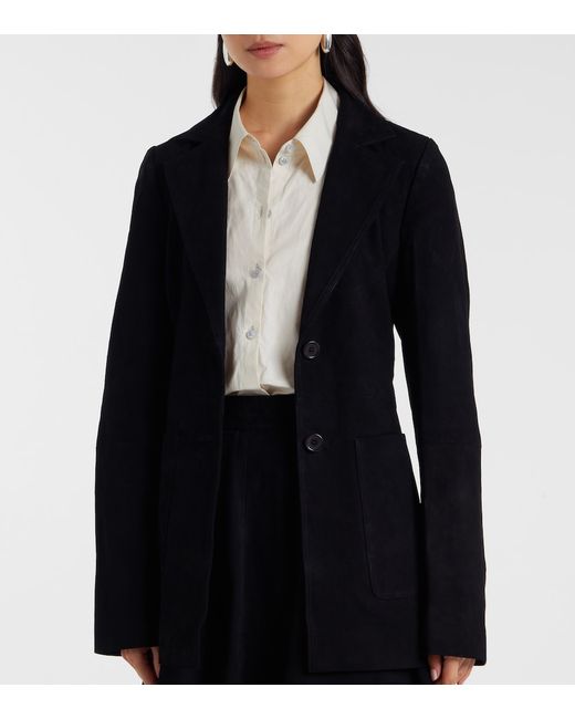 Material: 100% goat leather (suede). Care instructions: specialist clean. Made in India. Designer color name: Black. Item color: black. Lining: 100% viscose. Contains non-textile parts of animal origin. Notched lapel. Pockets: patch pockets. Closure: single-breasted (two buttons).