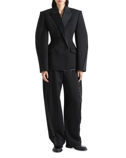 Tailored pants in wool with inside-out effect. Tailored pants in wool grain de poudre Zipped closure with hook Stitched satin bands for an inside-out effect Two side pockets One back pocket Visible stitching's and raw edges Bias seams for a cocooning volume Composition: 100% wool Secondary material: 100% polyester Made in Italy. Lsd Rtw - Givenchy Rtw > Givenchy > Saks Fifth Avenue. Givenchy. Color: Black. Size: 4.