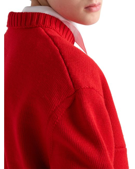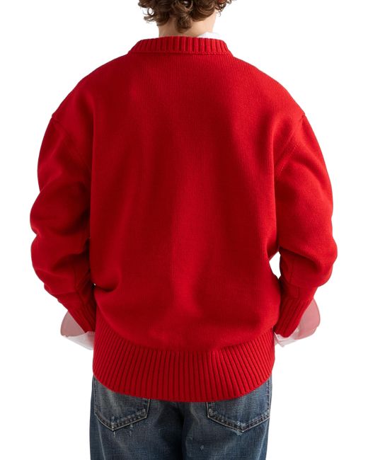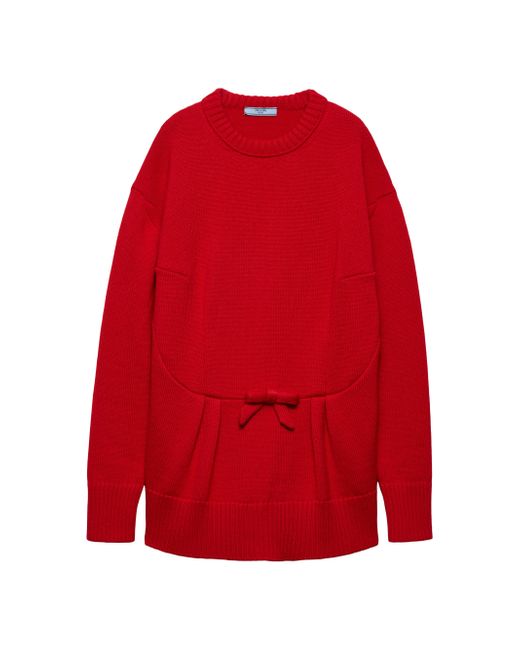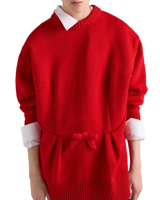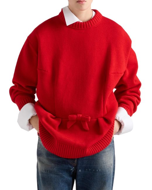 Long sleeves Plain knit Oversized fit Ribbed knit crew neck Drop shoulder Ribbed knit cuffs and hem Knit bow appliqué Imported 100% Fleece wool. Lsd Rtw - Prada Rtw > Prada > Saks Fifth Avenue. Prada. Color: Red. Size: 2.