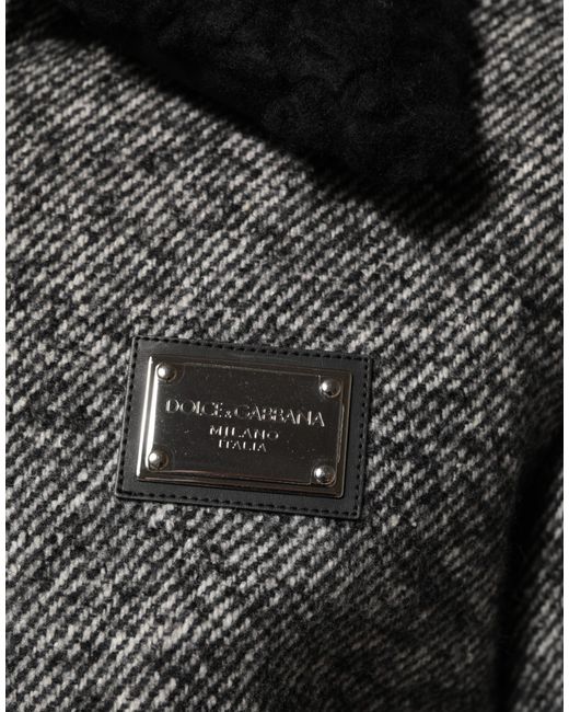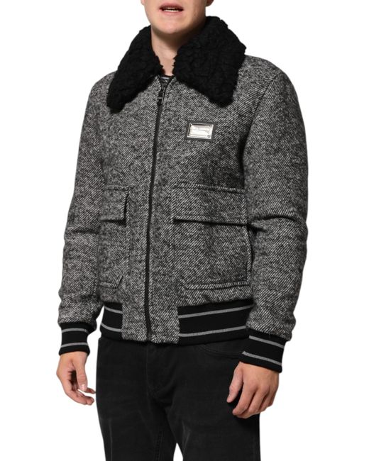 DOLCE & GABBANA Gorgeous brand new, 100% Authentic Dolce & Gabbana men’s bomber jacket. Expertly crafted in Italy, this jacket features a timeless gray herringbone wool pattern, accented with a luxurious black shearling collar. Designed with a front zip closure, ribbed cuffs and hem, and spacious flap pockets, it perfectly blends classic tailoring with contemporary streetwear style. Model: Bomber Jacket with Shearling Collar Color: Gray / Black Material:52% Wool 25% Polyester 14% Alpaca 10% Polyamide Shearling collar: 100% Lamb Zipper closure Logo details Made in Italy Great fitting and comfort