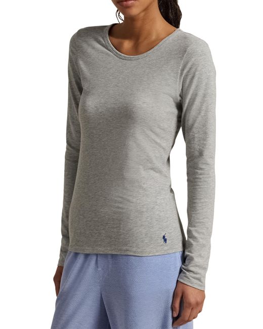 Cut in a slim silhouette, this heathered base layer T-shirt from Polo Ralph Lauren is crafted of stretch cotton and finished with the label's signature embroidery Pony at the left hem. Crewneck Long sleeves Pulls over 81% cotton/19% spandex Machine wash Imported SIZE & FIT About 28" from shoulder to hem Model measurements: 5'10" tall Model is wearing a US size Small ABOUT THE BRAND Synonymous with classic Americana style, Ralph Lauren started his collection of brands in 1967 with one item-the necktie-under the name Polo. Four years later, he debuted his first women's line, providing a segue to the debut of Ralph Lauren Collection. The epitome of polished dressing, the line's tailored coats, sweaters, trousers and more are both versatile and timeless. Lingerie - Modern Sleepwear > Polo Ralph Lauren > Saks Fifth Avenue. Polo Ralph Lauren. Color: Heather Grey. Size: Large.