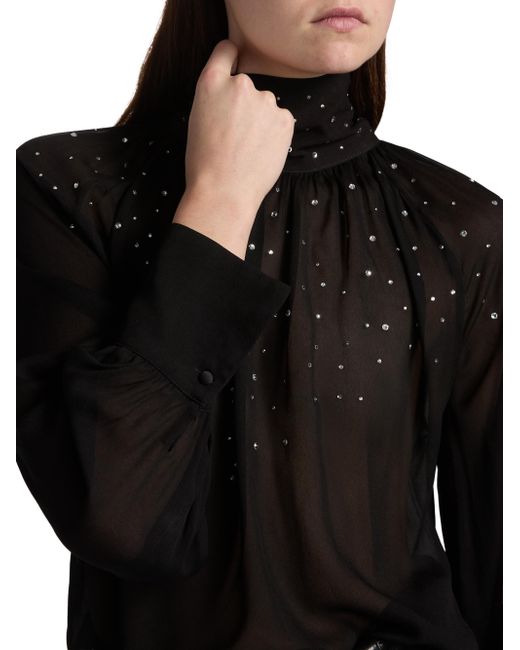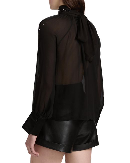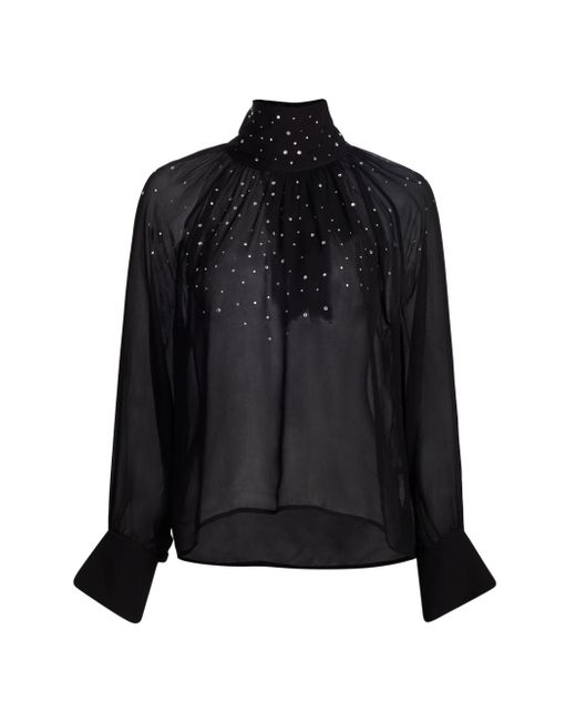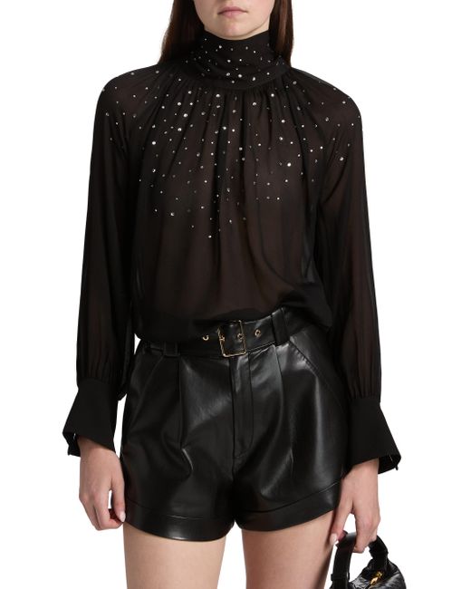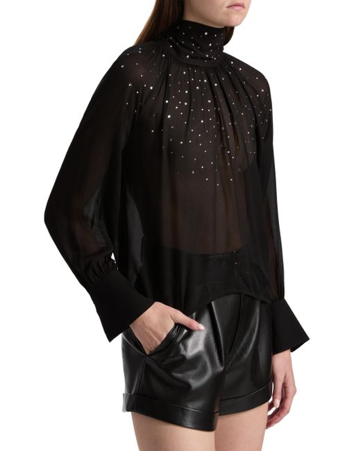 Generation Love's Noor turtleneck blouse showcases scattered crystal details, a back neck bow, and voluminous raglan sleeves. Turtleneck Raglan sleeves Back button and tie closure 100% viscose Dry clean Imported SIZE & FIT About 22" from shoulder to hem Model measurements: 5'10" tall Model is wearing a US size Small. Contemporary Sportswear - Casual Separates > Generation Love > Saks Fifth Avenue. Generation Love. Color: Black. Size: XS.