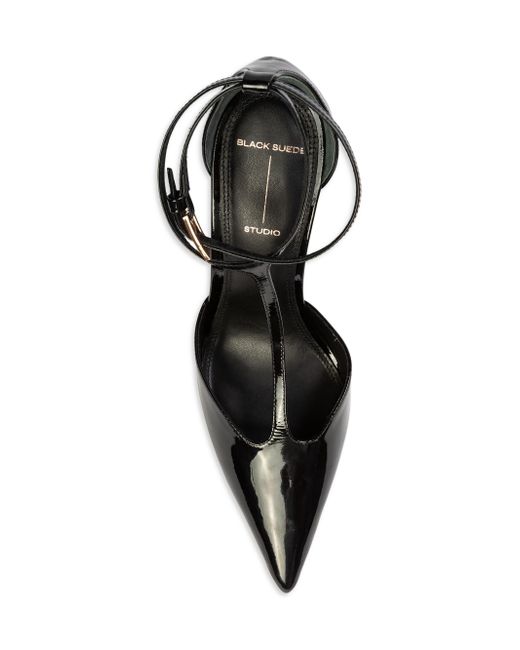Pointy-toe T-strap pumps, set on a pin-stiletto heel. Made with smooth patent leather. Heel Height: 100mm / 4 inches Leather Imported. Lsd Shoes - Shoes Lsd Mp > Black Suede Studio > Saks Fifth Avenue. Black Suede Studio. Color: Black Patent. Size: 5.